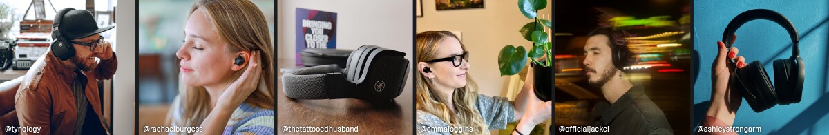 Del bilder av deg og Yamaha-hodetelefonene og -øreproppene dube på Instagram med #YamahaStayTrue, #TWE7B og tagg @Yamaha.Audio