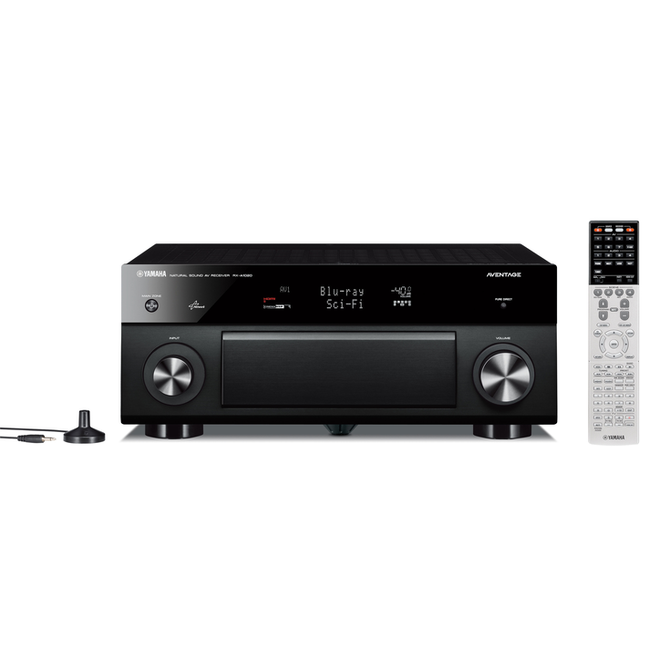 AVENTAGE model featuring construction designed to maximise sound quality with Anti Resonance Technology (A.R.T.) Wedge, Symmetrical Amp and Rigid Bottom Frame, as well as AirPlay for wireless music play, 4k upscaling for highest quality video, YPAO R.S.C, Dialogue Lift and Dialogue Level Adjustment, and 8 in/2 out HDMI.