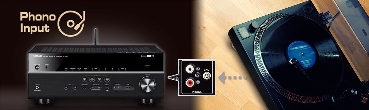 Denne AV-mottaker har phono inngang. Koble til en platespiller, og du kan nyte musikk fra vinylkolleksjon .