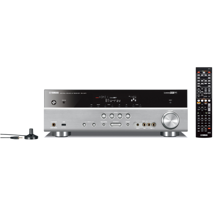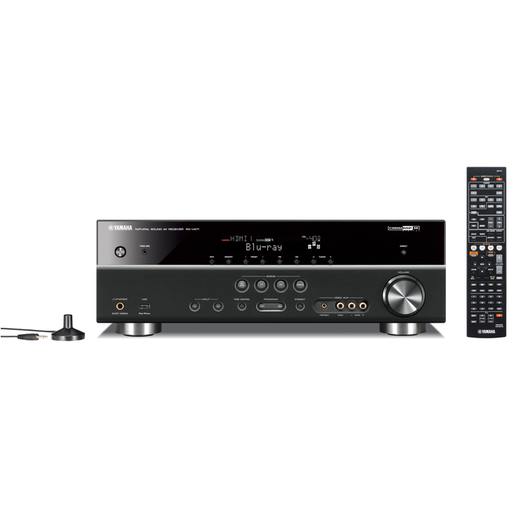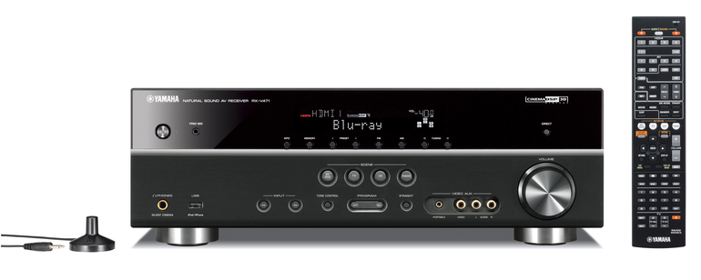 5.1 AV-receiver med USB-port på frontpanelet for digal tilkobling av iPod og iPhone, avansert GUI-menysystem, HDMI 4 inn/1ut med 3D og Audio Return Channel, HD-audiodekoding med CINEMA DSP 3D, YPAO och SCENE-funktioner.