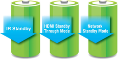 Vi på Yamaha verner om miljøet og jobber kontinuerlig med å få ned strømforbruket. I modust for IR standby drar den 0,1W, 1W i HDMI Standby Through modus, 2W in Network standby modus.