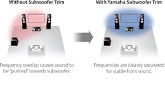 Subwoofer Trim forbedrer lyden på de lave frekvensene gjennom å unngå overlapping med de fremre høyttalerene. Dette vil resultere i en renere lyd, et mer fokusert lydbilde samtidig som det gir en jevnere frekvensgang. Når "vanlig" lyd som ikke er subwoofer frekvenser kommer ut av subwooferen, hvilket faktisk ofte forekommer i konvensjonelle system, "skytes" lydbildet mot subwooferen. Subwoofer Trim tar hånd om dette og filterer ut de lave subwoofer frekvensene. Dette stabiliserer front stage samtidig som du får en bedre totallyd og en renere bassgjengivelse.