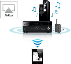 AirPlay gjør det mulig å streame musikk trådløst fra iPod touch, iPhone, iPad eller musikk fra iTunes på Mac eller PC. Med Airplay er det enkelt å spille musikk fra dine mobile enheter eller PC på ditt hjemmekinosystem. Du kan vise informasjon som låtens tittel, artistens navn samt plateomslag * via AV-receiverens On-Screen Display.