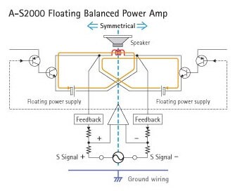 The Floating Balanced Power Amp configuration is completely different from the pure complementary circuit design that has been the mainstream of HiFi amps for nearly forty years.