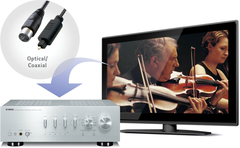 The A-S801 equipped for digital audio input with both optical and coaxial terminals. The optical is for receiving audio from a TV, and the coaxial for receiving audio from a Blu-ray player. The audio stays in the digital domain, giving you pure, pristine dynamic sound for all your entertainment sources, from sports and other programs to movies and concerts.