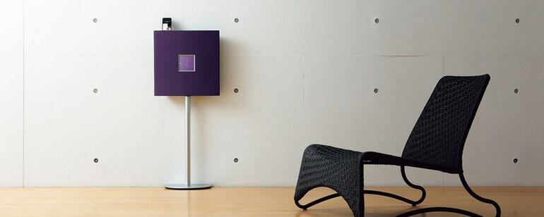 Med sitt slanke stativ og minimalistiske proporsjoner ser Restio ut som et kunstverk. Den ble skapt ut ifra konseptet at lydkilden skal være en del av interiøret. Utseendet gjør dette anlegget til et element i interiørdesignet, og med sine skråstilte sider gir den inntrykk av å kun være et tynt panel. Forsiden er dekket av et metallnett, og under dette finnes et stripete mønster som øker dybdefølelsen. Man får inntrykk av at lyden kommer fra hele frontyten. Design og interiørtilpasning gjør dette til lyd i et format som matcher din livsstil.