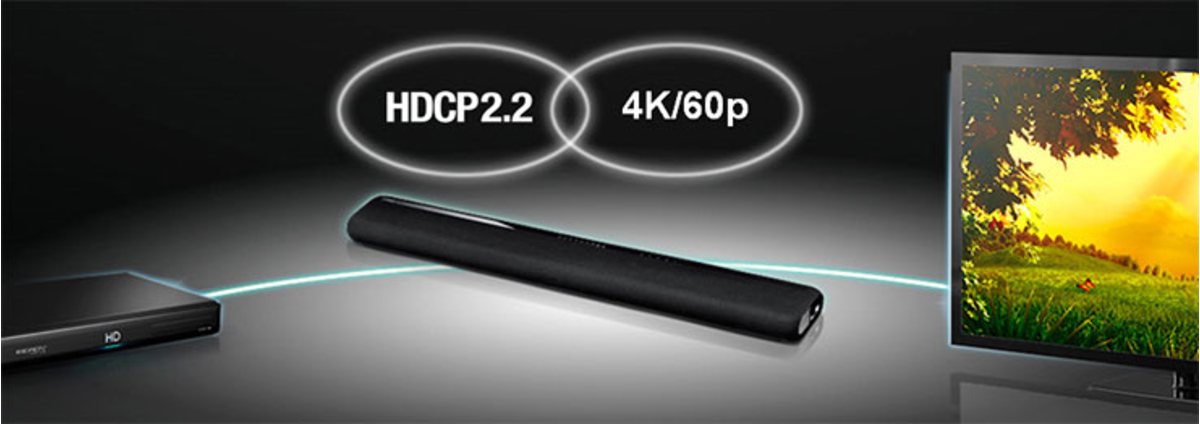 The YAS-106 has a HDMI input terminals and one HDMI output terminal, and supports 4K/60p (4:2:0) video signal pass-through. It’s also compatible with HDCP2.2 digital copy protection. This gives it extensive expandability, so you’ll be able to use it far into the future.