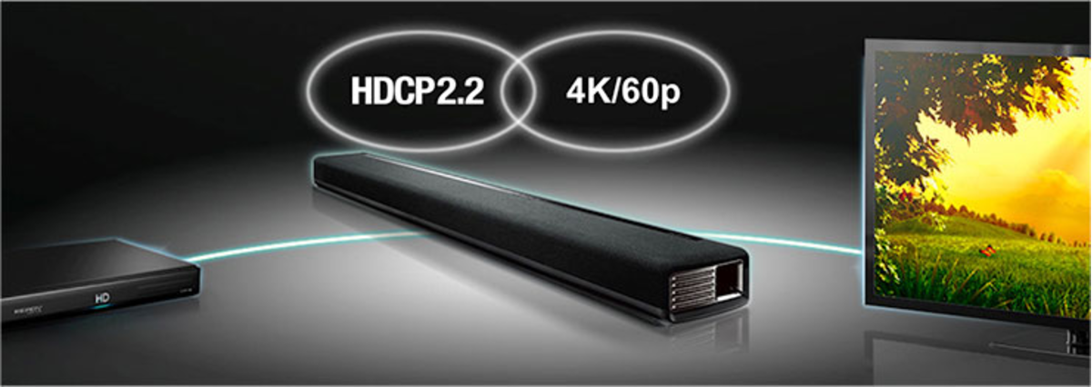 The YAS-706 has two HDMI® input terminals and one HDMI® output terminal, and supports 4K/60p video signal pass-through. It’s also compatible with HDCP2.2 digital copy protection. This gives it extensive expandability, so you’ll be able to use it far into the future.