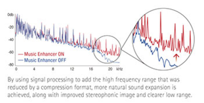 The Compressed Music Enhancer restores frequency response lost during digital compression, so your music sounds the way it should. It is optimised for Bluetooth® audio transmission for vivid, lively sound quality during wireless playback. The function engages automatically when a compressed source is played.