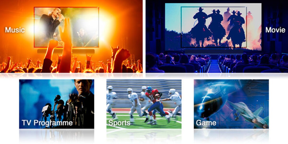 - Sound Mode (MUSIC, MOVIE, SPORT, GAME and TV)