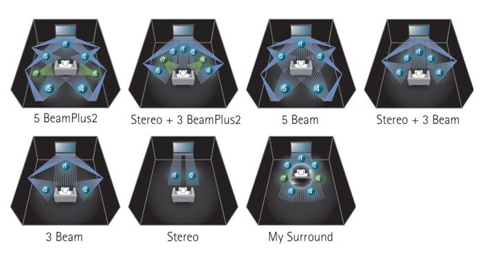 YSP-2200 oppnår ekte surroundlyd ved å reflektere lyden via veggene, slik at den når lytteren fra forskjellige vinkler. Hovedmodusen er 5 BeamPlus2 for 7-kanalskilder. I tillegg finnes en rekke andre lyttemoduser; 3 BeamPlus2 + Stereo, 5 Beam, Stereo + 3 Beam, 3 Beam, Stereo og My Surround.