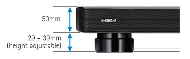 YSP-2200 er kun 79mm høy og kan plasseres foran de fleste TV-er uten å blokkere bildet. Høydejusterbare ben gjør det mulig å oppnå optimal posisjonering, eller de kan fjernes helt.
