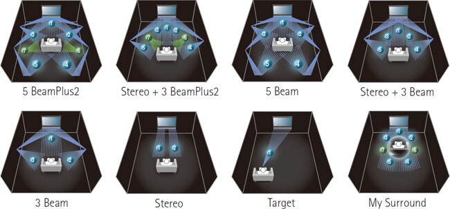 YSP-2200 oppnår ekte surroundlyd ved å reflektere lyden via veggene, slik at den når lytteren fra forskjellige vinkler. Hovedmodusen er 5 BeamPlus2 for 7-kanalskilder. I tillegg finnes en rekke andre lyttemoduser; 3 BeamPlus2 + Stereo, 5 Beam, Stereo + 3 Beam, 3 Beam, Stereo og My Surround.