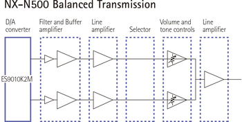 D/A-omvandlaren på NX-N500 heter ES9010K2M och kommer från ESS Technology, Inc. Den kan hantera stora mängder ljuddata med full PCM 384kHz, 5.6MHz DSD med precision av 32-bitars ljud. Eftersom den inbyggda D/A-omvandlaren med sin egen huvudklocka, har den en inbyggd Jitter elimineringsfunktion. Resultatet är en omvandling med extremt låg effekt av klock-jitter.