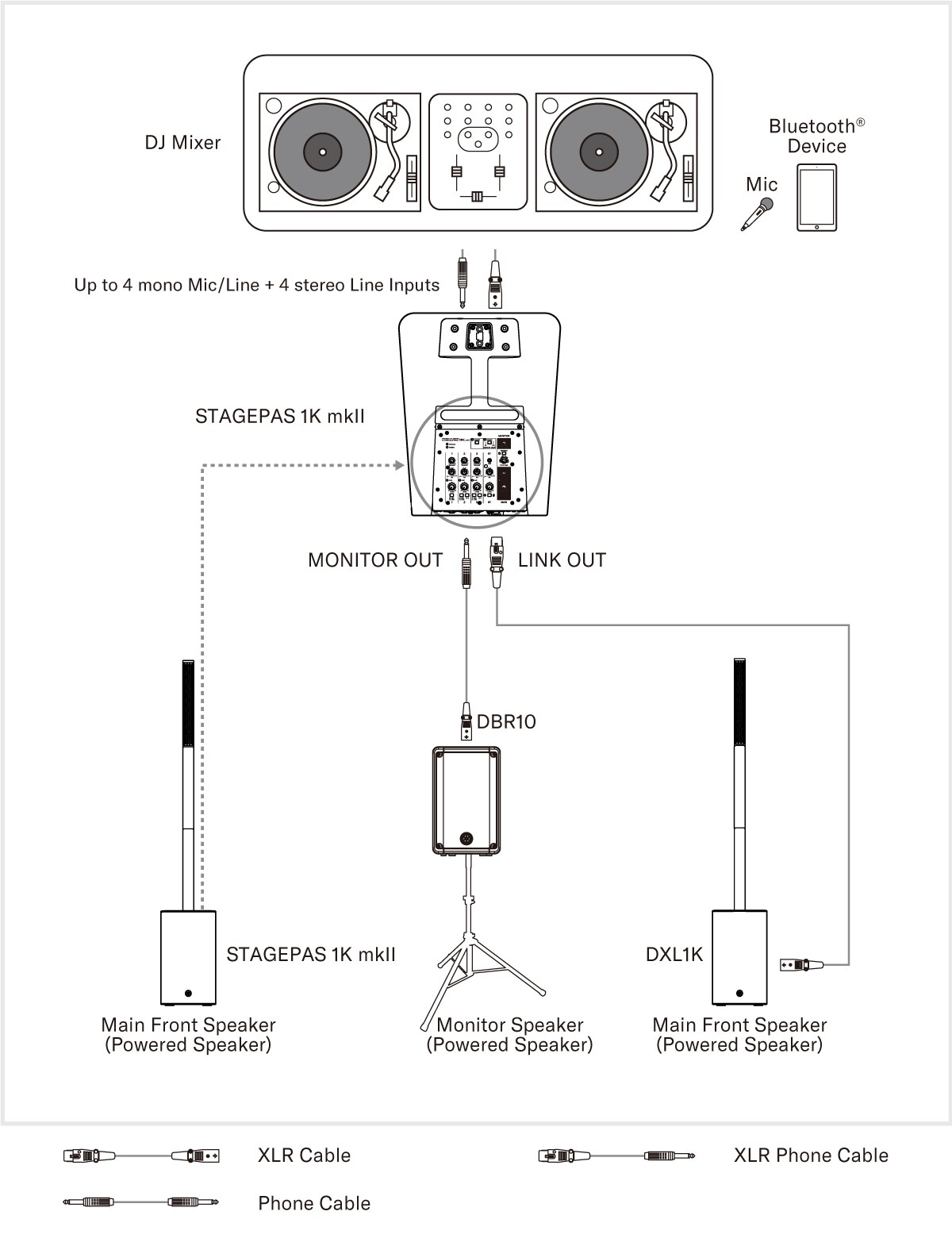 - Monitor out can be used for DJ monitoring with a powered speaker. [Portable PA System STAGEPAS 1K mkII]