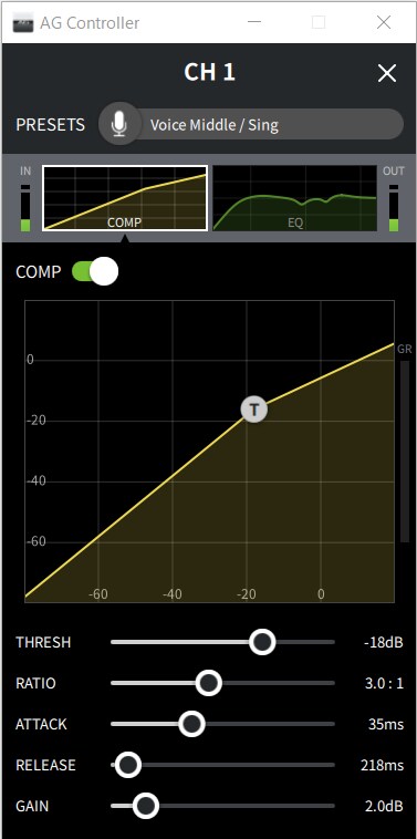 AG Controller is a software application that allows you to control the DSP functions of the AG03MK2, AG06MK2, AG03, AG06, and AG01 from your Windows / Mac / iOS device via USB connection