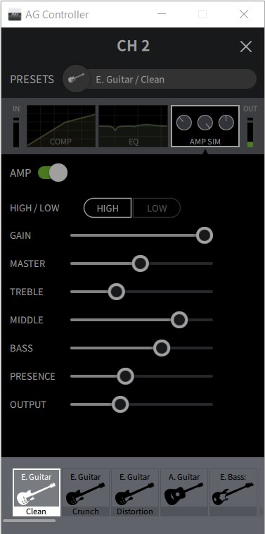 *The Amp Simulator is available on the AG06MK2, AG03MK2, AG06, and AG03.