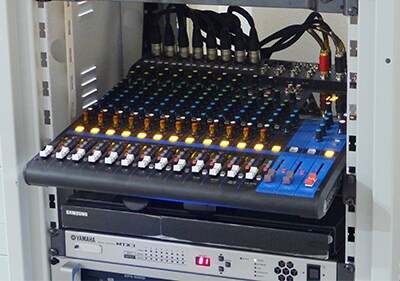 The Yamaha equipment includes a pair of IF2115/95 loudspeakers for the main L-R sound, a centre IF2115/AS and two IS1218 subs. The system is powered by two PC9501N and a PC2001N power amplifiers, with control and routing by the MTX3. An MG16XU mixer is included for live performances and background music, while a DCP1V4S wall panel provides overall control.