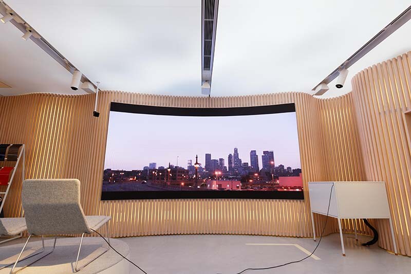 Our company did the visual and audio installation for Volvo Studio Aoyama. Planning and design were all done at the Volvo head office. It was our job to install the video and audio system based on the plans provided by Volvo.