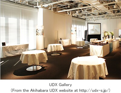 UDX Conference is a formal rental conference room, and UDX Gallery is a large event space. UDX Conference covers an area of about 350 square meters with a ceiling height of 2.85 meters. UDX Gallery is 725 square meters in area with a ceiling height of about 4 meters.
