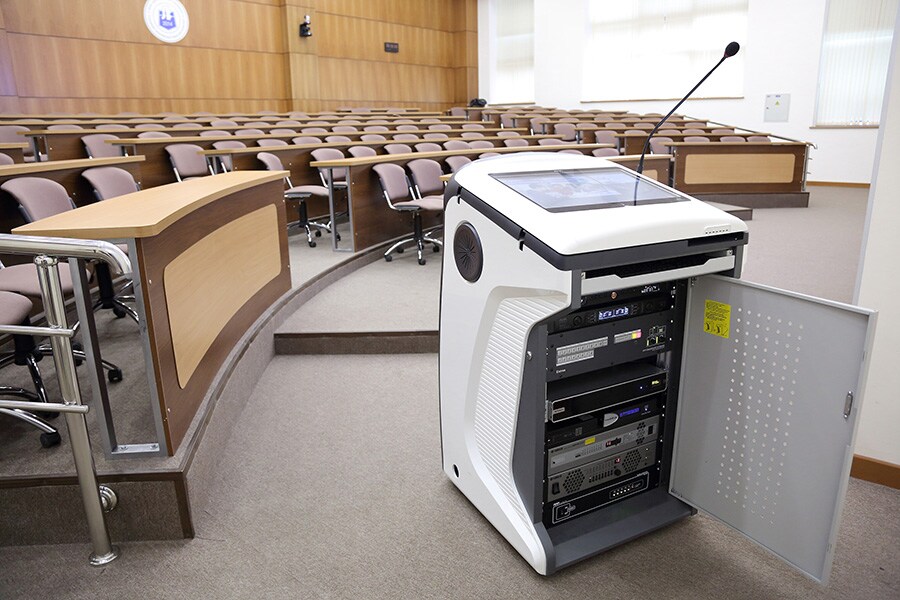 Mr. Muzaffar Djalalov, Acting Rector of INHA University in Tashkent, adds,“The system is very easy to use via the DCP wall panels and Extron touchscreens. The sound for any type of presentation is excellent, with the Dan Dugan automixing makes a big difference in only needing to have a sound engineer on duty for bigger events in the main lecture hall.”