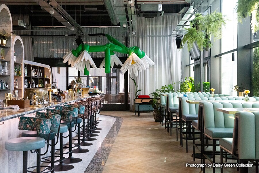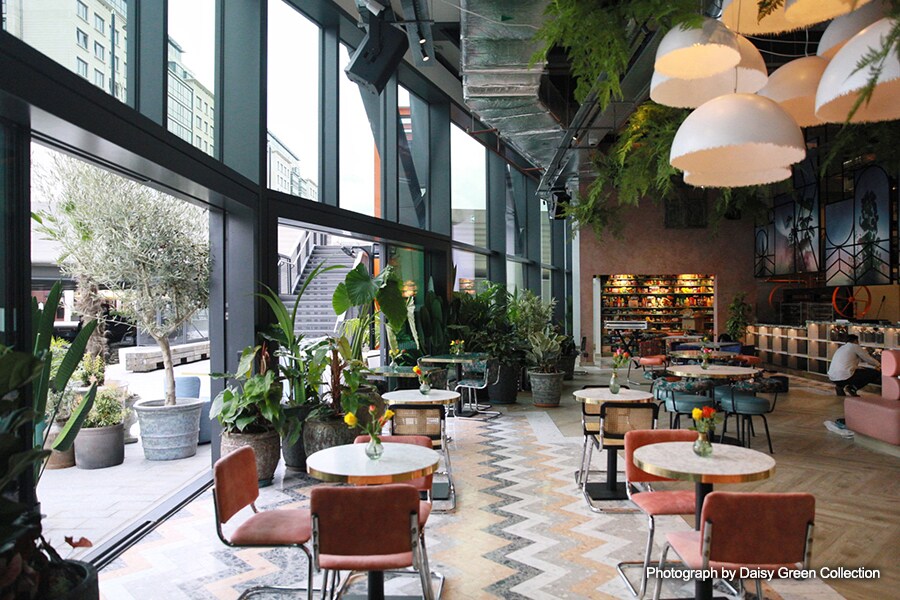 Founded by Prue Freeman and Tom Onions in 2012, Daisy | Green has developed an attractive range of premises throughout London, each individually designed to make it a unique experience for customers. Completed in 2019, the Brunel Building’s 16 floors and 22,610㎡ of office space gave Prue and Tom the opportunity to establish a larger, more permanent restaurant close to its existing Darcie & May | Green restaurant, a pair of converted narrowboats which float on the adjacent Grand Union Canal.