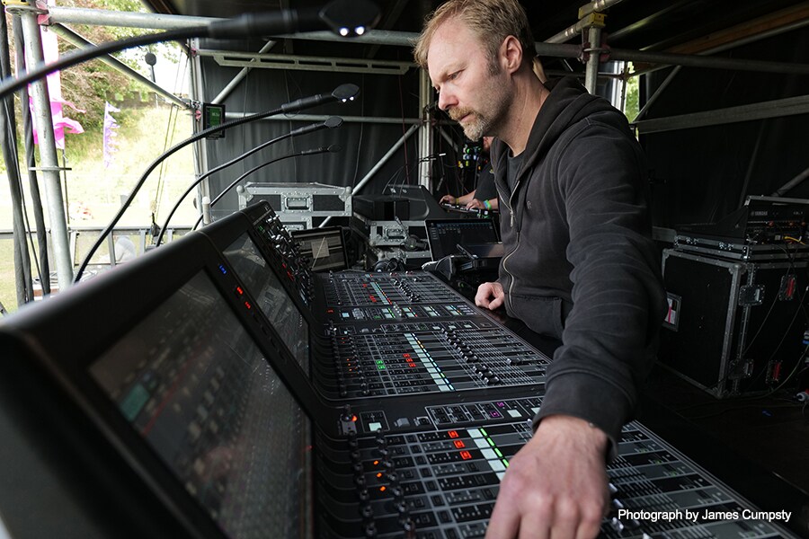 “They are quite tricky to mix. They play a bit like a punk band, reacting to the vibe of the gig,” says Nigel. “The custom layers function really helps with this, letting me populate fader banks with just what I need to mix the show. There’s no need to scroll through banks, there’s nothing buried in menus. It means I can have my hands on the faders, looking at the stage, throughout the show.”