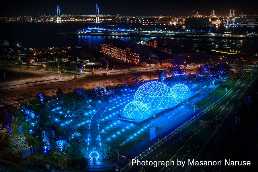 From November 18 (Thursday) to December 26 (Sunday), 2021, “YORUNOYO - YOKOHAMA CROSS NIGHT ILLUMINATION”, an art illumination event featuring state-of-the-art light and sound technology, was held in the city of Minatomirai, Yokohama.