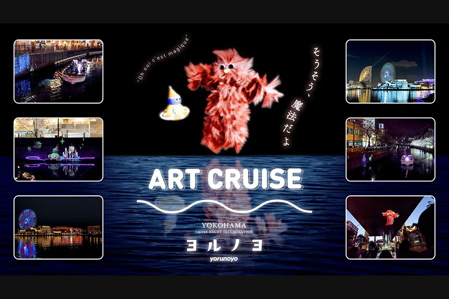 Yorunoyo is an urban illumination event spread across the entire Yokohama Bay Area for the public to experience the ever-growing “Yokohama-ness” through light and music. Yorunoyo consists of various interactive events: “NIGHT WALKING,” in which visitors experience light and sound in the “Cross Dome” at the Shinko Chuo Square, the main venue; “NIGHT VIEWING,” a five-minute event in which light and sound are interlinked with the surrounding facilities such as Minatomirai, Bashamichi, and Kannai; “PORTAL” installed at 12 locations in the waterfront area of central Yokohama, in which lights and sounds change as people pass; and an “ART CRUISE,” a night boat cruise where visitors can enjoy the illumination and projection mapping of Yorunoyo from the boat.