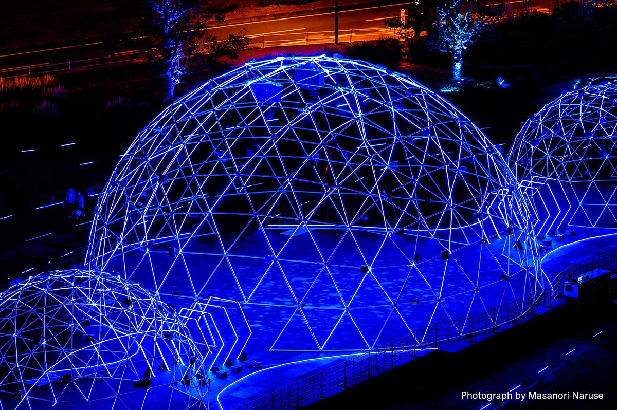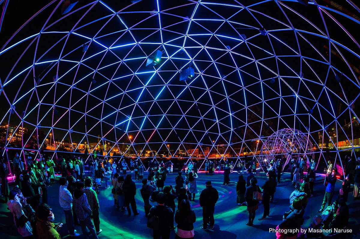 Since the first Yorunoyo, I have been in charge of the overall direction of the concept and content, as well as composing the music. The “Cross Dome,” a collection of three domes, was inspired by the lattice-like crossed-out framework of tents at rock festivals and other events. It also means “intersection” of people, things, and culture. Yokohama is situated on a bay, so I created the music with wind, water, and the flow of the ocean in mind.
