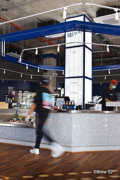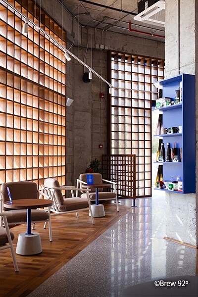 Brew92º is a Saudi Arabian chain of speciality café and roastery shops which combine high-quality coffee with a vibrant, modern environment. The ambience plays a key role in delivering an immersive customer experience. Yamaha high quality audio solutions are an integral part of the design.