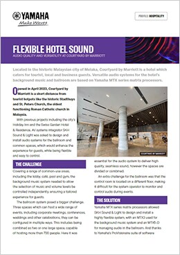 Located in the historic Malaysian city of Melaka, Courtyard by Marriott is a hotel which caters for tourist, local and business guests. Versatile audio systems for the hotel’s background music and ballroom are based on Yamaha MTX series matrix processors.