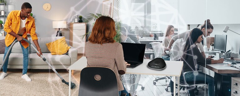 The CS-700AV fits perfectly under a TV at home, but also in a small meeting room through to an executive office. Simply connect it to your company laptop and begin hybrid working.