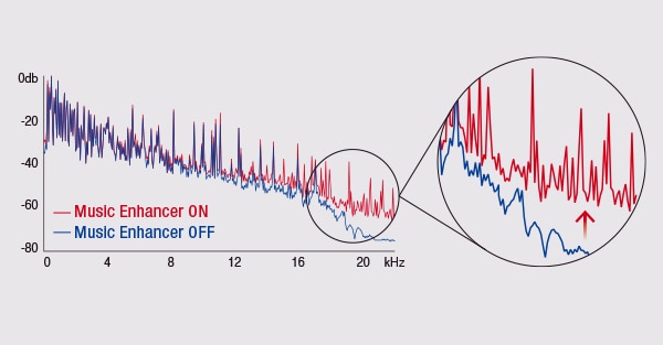 Når musikk er kodet til et digitalt komprimert format som MP3, blir frekvensgangen lidende. Yamahas Compressed Music Enhancer bruker sofistikert digital signalbehandling med eksklusive algoritmer for å gjenskape det som tapes, slik at musikken alltid låter som den skal.