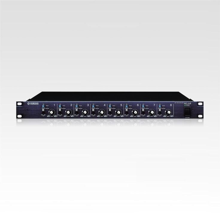 In a space-saving 1U design, the MLA8 front panel offers a 26 dB pad, adjustable 44 dB gain trim, an 80 Hz high-pass filter, and a phantom-power switch on each channel. Used in conjunction with Yamaha digital mixers, DME64N/24N digital mixing engines, or other state-of-the-art digital audio gear, the MLA8 offers simple, straightforward signal control that can provide invaluable complementary functionality for a wide range of applications.