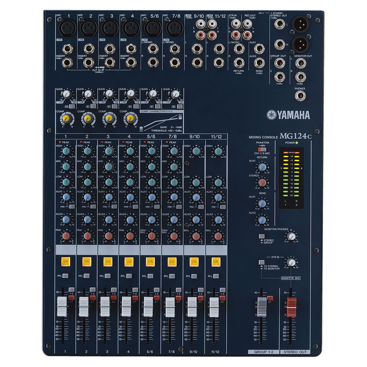 - 12 Input channels (6 Mics + 4 Stereo line inputs)