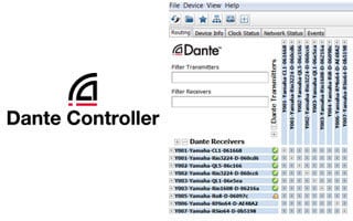 A Dante Controller button at the top of the Yamaha Audio Network Monitor interface lets you launch the Dante Controller with a single click (the Dante Controller software must be installed on the computer). Seamless switching between the Yamaha Audio Network Monitor and Dante Controller provides total Dante network control from a single computer.