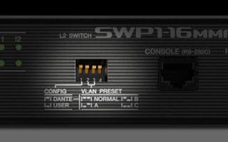 Simple Dante networks are not difficult to set up and operate, but as network complexity grows the switches used need to be optimized for Dante operation in order to achieve maximum stability. Setting up QoS, IGMP Snooping, and other parameters on an intelligent switch can be a complex task, requiring specialized knowledge that is more the domain of IT technicians than audio engineers. The SWP1 series allows a Dante optimized setup to be recalled by simply flipping one DIP switch. No expertise or training is required.