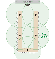For the "Microphone x 3" and "Microphone x 5" configurations shown above, audio quality is superior in the "Microphone x 5" configuration as the microphones are placed closer to the participants.