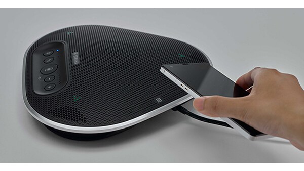 Smoothly connects via USB for a PC-based Web conference, via Bluetooth*1 for an audio conference using your smartphone's telephone line, or via audio I/O terminals*2 for a video conference system. Equipped with 3 interfaces, it can be connected flexibly to various kinds of devices or conference systems.
