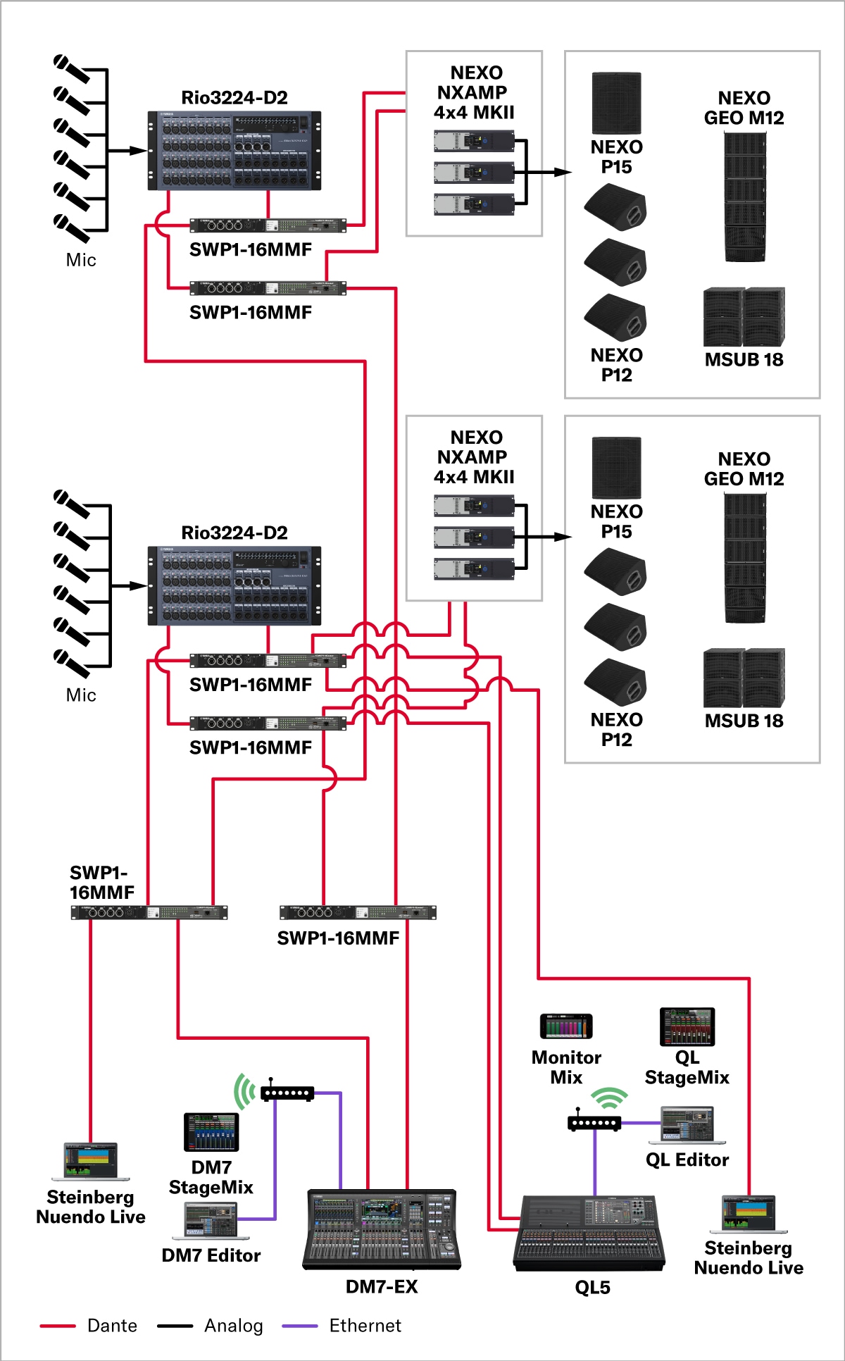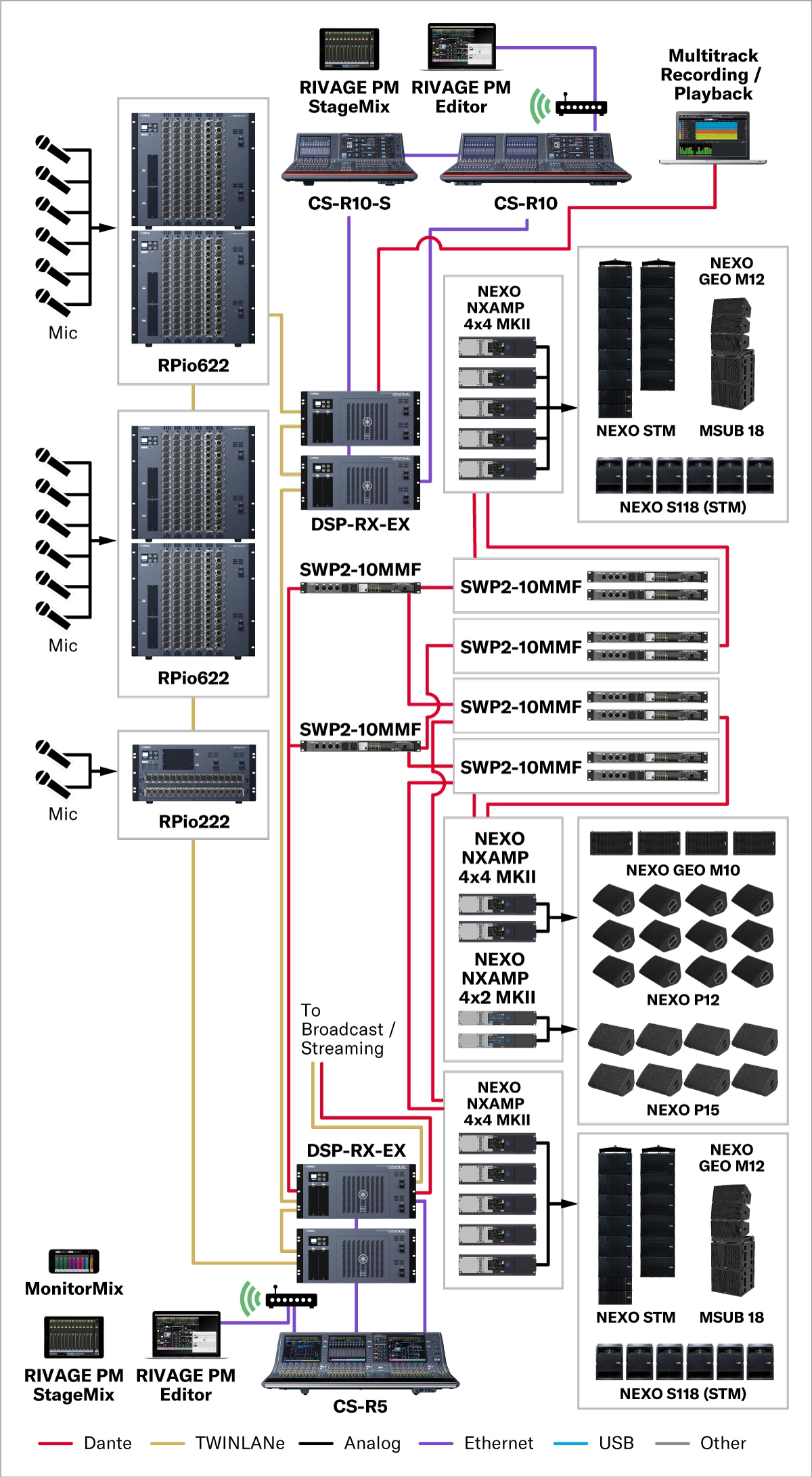 In order to accommodate a wide range of concerts and events that span multiple genres, sound systems in live music venues have to meet a similarly diverse range of demands beyond the requisite high power/ high quality sound reinforcement. System flexibility, reliability, and ease of operation are crucial for engineers tasked with executing consistent high-performance sound night after night despite the number of channels, tonal balance, dynamic range, and sound pressure levels varying greatly from event to event. As such, it can be quite daunting to select and configure a system that addresses these requirements, along with installation-related considerations such as venue size and capacity, power supply conditions, and overall budget. With Yamaha however, system owners are able to streamline the process of building the optimal sound system for their venue’s specific scale, budget, and applications by taking advantage of the technology and know-how we’ve cultivated through more than 50 years of developing, manufacturing, and selling acclaimed professional audio equipment. With our extensive lineups of compatible products and comprehensive support, it’s never been easier to create the perfect sound system for your live music venue.