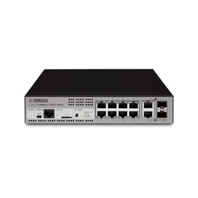 Integrates the RM-CR remote conference processor, VXL1-16P Dante/PoE-compatible line array speaker, and SWR2311P-10G PoE network switch.