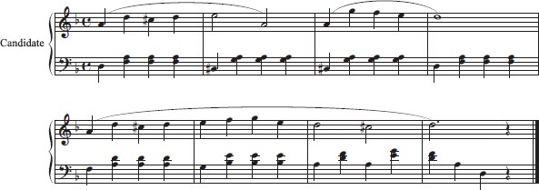 1. As the examiner plays the melody, candidates listen while looking at the score. The bass notes are given.
