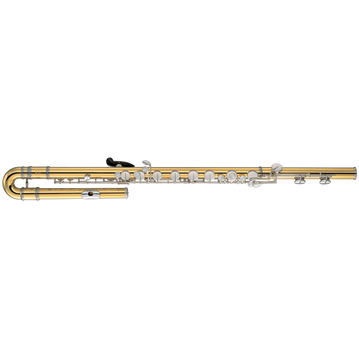 The YFL-B441 bass flute is made from gold-brass like the YFL-A421 alto flute and features a similar quick response, rich beautiful tone, and accurate intonation. The bass flutes are often used in flute ensembles and studio recordings, and are increasingly used to play difficult alto solos in the orchestral literature. As with the alto, the gold-brass makes the flute much lighter and easier to hold, while still creating a rich and colorful sound.