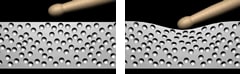Becoming a good drummer takes endless hours of dedicated practice. With this in mind, we at Yamaha designed DTXdrums to make practicing more fun, focusing on giving the DTX-PAD a feel that would let drummers simply enjoy playing. The head of the DTX-PAD is filled with air bubbles of a size and density that have been carefully arrayed to provide a feel that actually entices drummers to play. These bubbles also act as a cushion when the drum is hit, so that you can play for extended periods without worrying about harming your arms or wrists. Put simply, the DTX-PAD lets you practice and play more, reaping the benefits of a drum that really feels great.