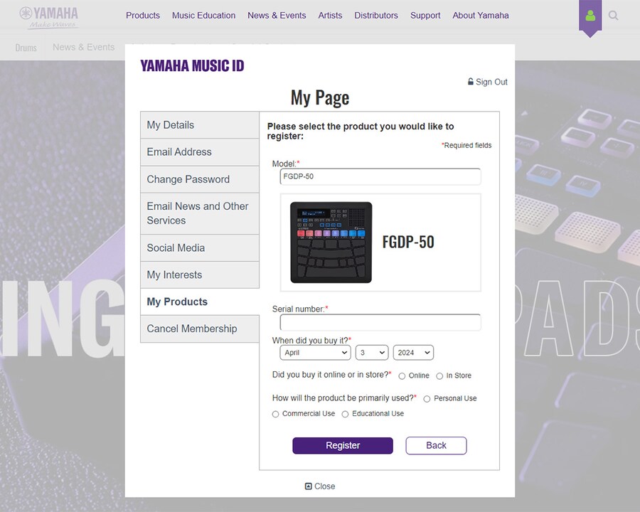 The additional kits and backing tracks will be distributed via email to those who have registered their products on Yamaha Music ID. Please follow the instructions below to receive the item, and upon completion of step 2, a URL will be sent to your registered email address that will allow you to obtain the bonus content.