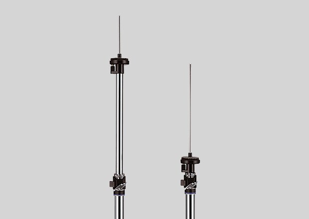 Knock-type spikes that extend with a single touch, combined with large rubber feet keep the stand stable and secure.