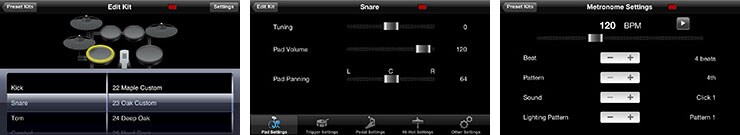 Create new kit configurations; assign new drum voices to each pad. Then take total control by customising the parameters of each individual pad.Enables access to previously unavailable parameters such as pad tuning, cymbal and hi-hat size.Access the Tempo and Metronome settings with a single touch.