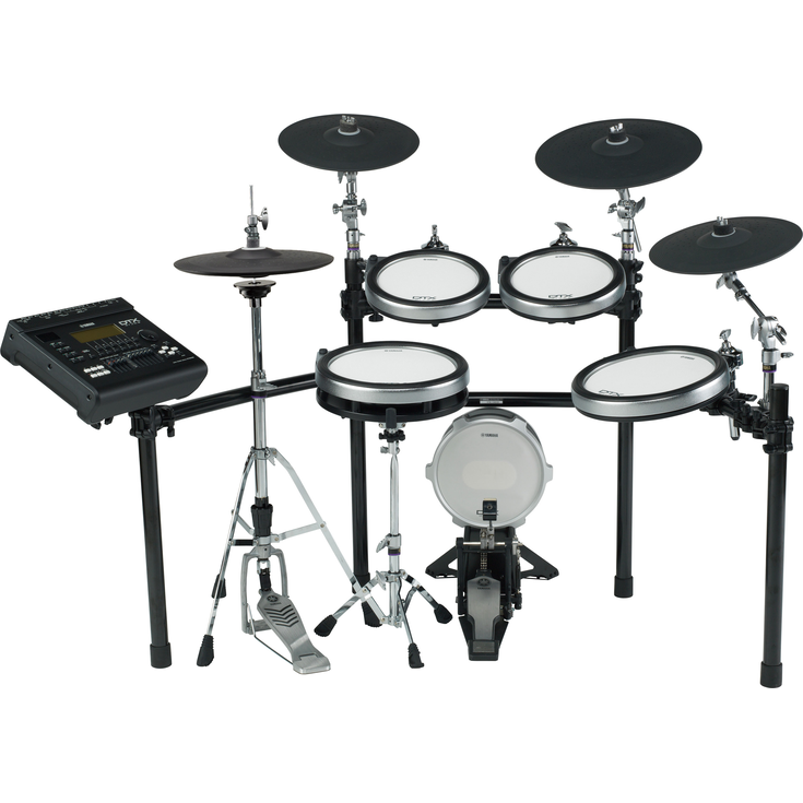 - Uses the vertically mobile RHH135 hi-hat pad. This pad is incredibly quiet, and its pedal has a natural feel. You can control different sounds with the pad and edge areas, and foot splashing is supported. The HS740A hi-hat stand is included.- There are two cymbal pads, the 15-inch PCY155 and the 13-inch PCY135. They both have three zones, the pad, edge, and cup. Each zone produces a different sound. Because sticks bounce and vibrate on these pads in almost the exact same way that they do on real cymbals, you'll get that same feeling that you do playing on an acoustic drum set. Also, you can choke the cymbal pads by grabbing their edges after you hit them.- Uses the KP125W kick pads, which guarantee stable play even when you are using double foot pedals. A protective sheet that covers the entire drum head makes each kick pad powerfully durable.