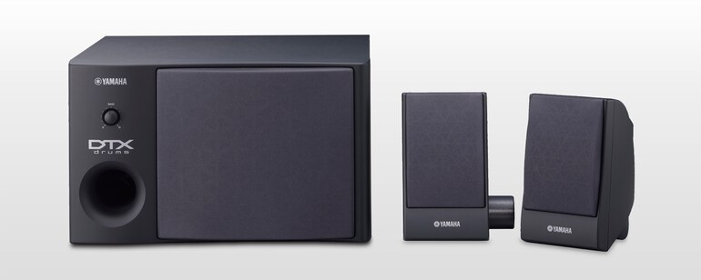 A 2.1-channel monitor system for electronic drums that is designed for home use. It is one of the most compact monitor systems in the world, so it won't take up too much space in your home. It also has a stylish black design that will match well with the room you use it in. The system consists of left and right satellite speakers, which can be attached to a rack, and a subwoofer. These speakers enable you to experience intensely realistic stereo sound that will make you feel like you are performing on an acoustic drum set. Also, this system is perfect for monitoring in the home, with 20W of power for each of the two satellite speakers and 40W of power for the subwoofer.